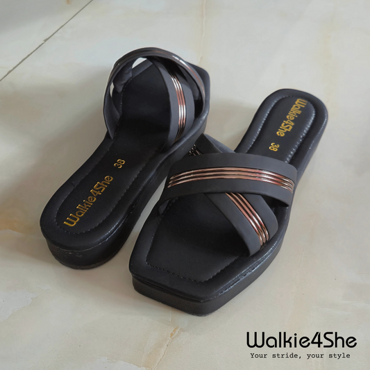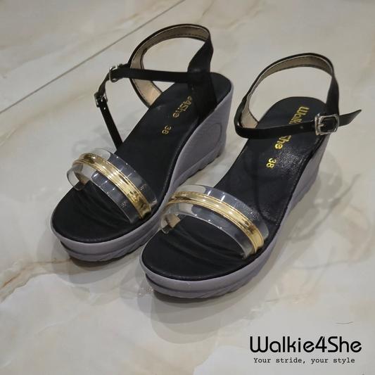 W4S-P-11002 Wedge Sandal - Black, Grey, Gold