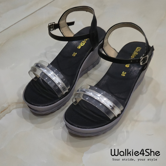 W4S-P-11003 Wedge Sandal - Black, Grey, Silver