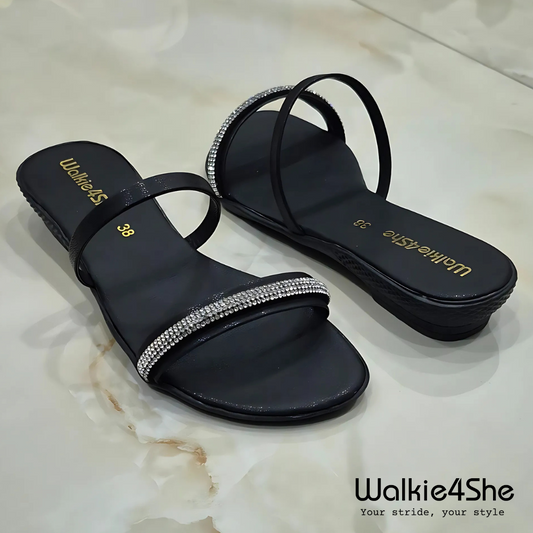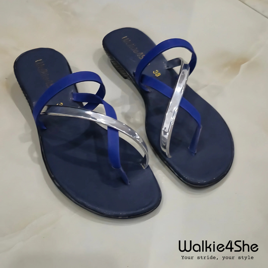 W4S-F-1134 Flat Sandal - Black, Blue, Gold Toe Ring