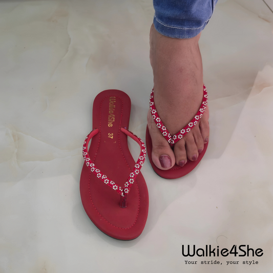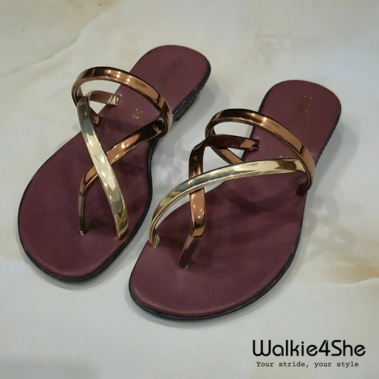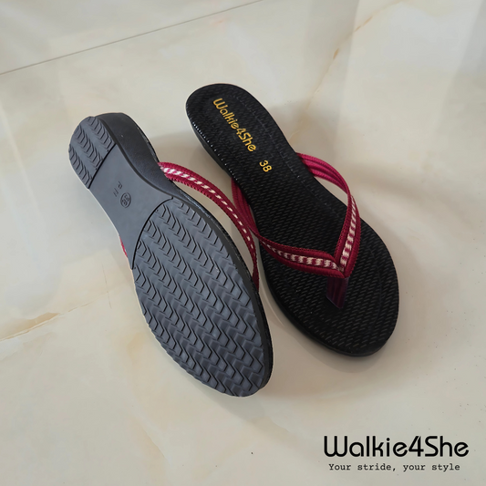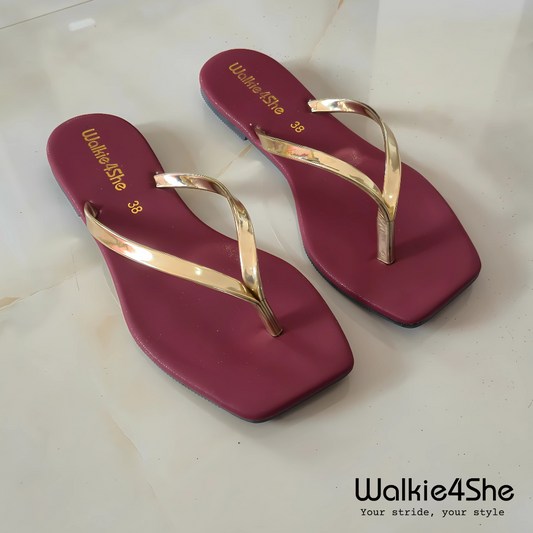 W4S-F-1132 Flat Sandal - Maroon, Gold Toe Ring