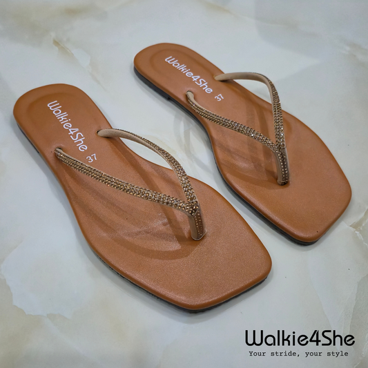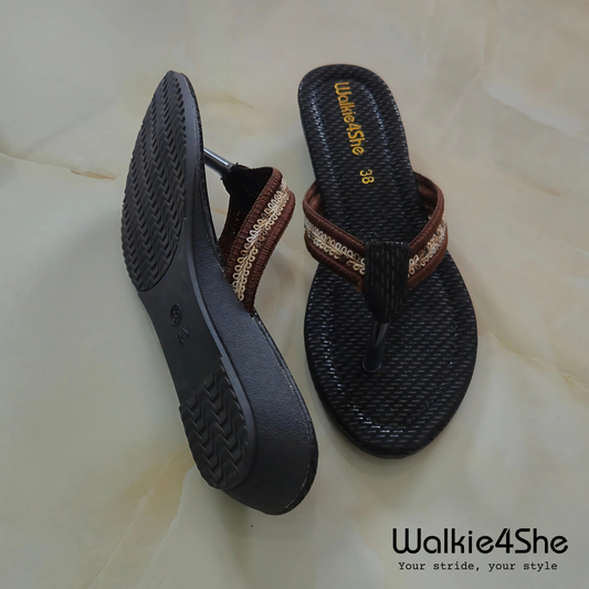 W4S-F-1131 Flat Sandal - Brown, Black, Gold Toe Ring
