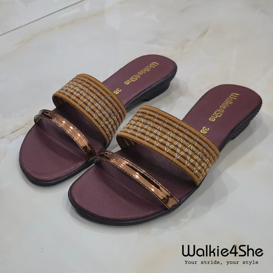 W4S-F-1321 Flat Sandal - Maroon, Gold
