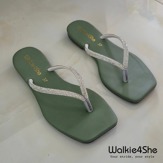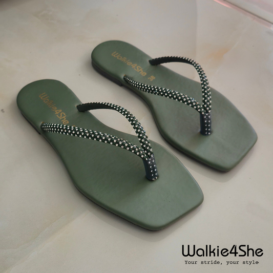 W4S-F-1281 Flat Sandal - Green, Transparent