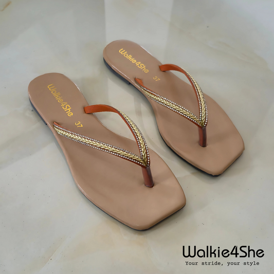 W4S-F-1261 Flat Sandal - Beige, Metallic Brown