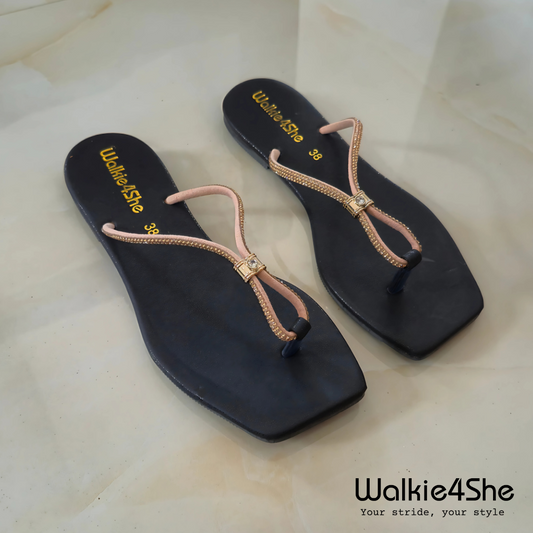W4S-F-1133 Flat Sandal - Black, Gold Toe Ring