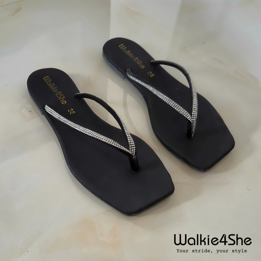W4S-F-1044 Flat Sandal - Black, Light Blue Toe Ring
